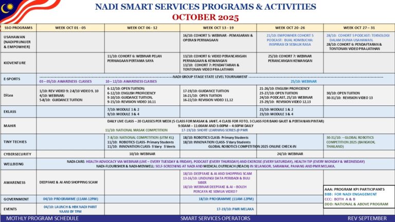 Program NADI Webinar Kidventure: Operasi Perniagaan Tarikh / Masa 20 September 2025 , 10 pg- 11pg Tempat NADI Pekan Kapit NADI Pekan Kapit – Pelaksanaan Webinar : Operasi Perniagaan KidVenture Cohort 6 pada 20 September 2025 (Sabtu) di NADI Pekan […]