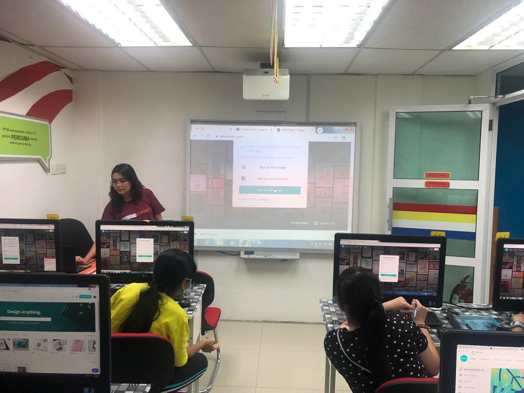 Canva memudahkan peserta untuk melakar poster mereka dengan pelbagai reka bentuk, warna dan template. Melalui bengkel poster ini, peserta dapat mengasah bakat mereka dalam membuat poster dan pelbagai reka bentuk kerja melalui aplikasi Canva.