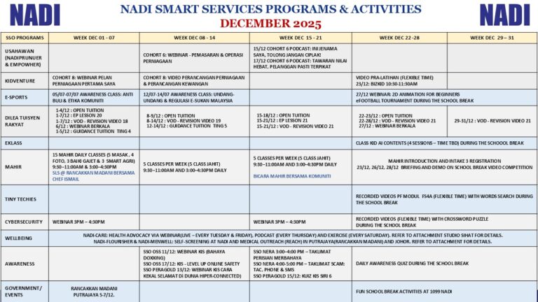 Berkunjung ke NADI dan mari meneroka program cuti sekolah @ NADI bersama program Perkhidmatan Pintar NADI semasa cuti sekolah. Antara aktiviti yang dianjurkan adalah secara atas talian dan bersemuka. Rancakkan masa cuti anak anda dan komuniti di sekitar NADI dengan […]